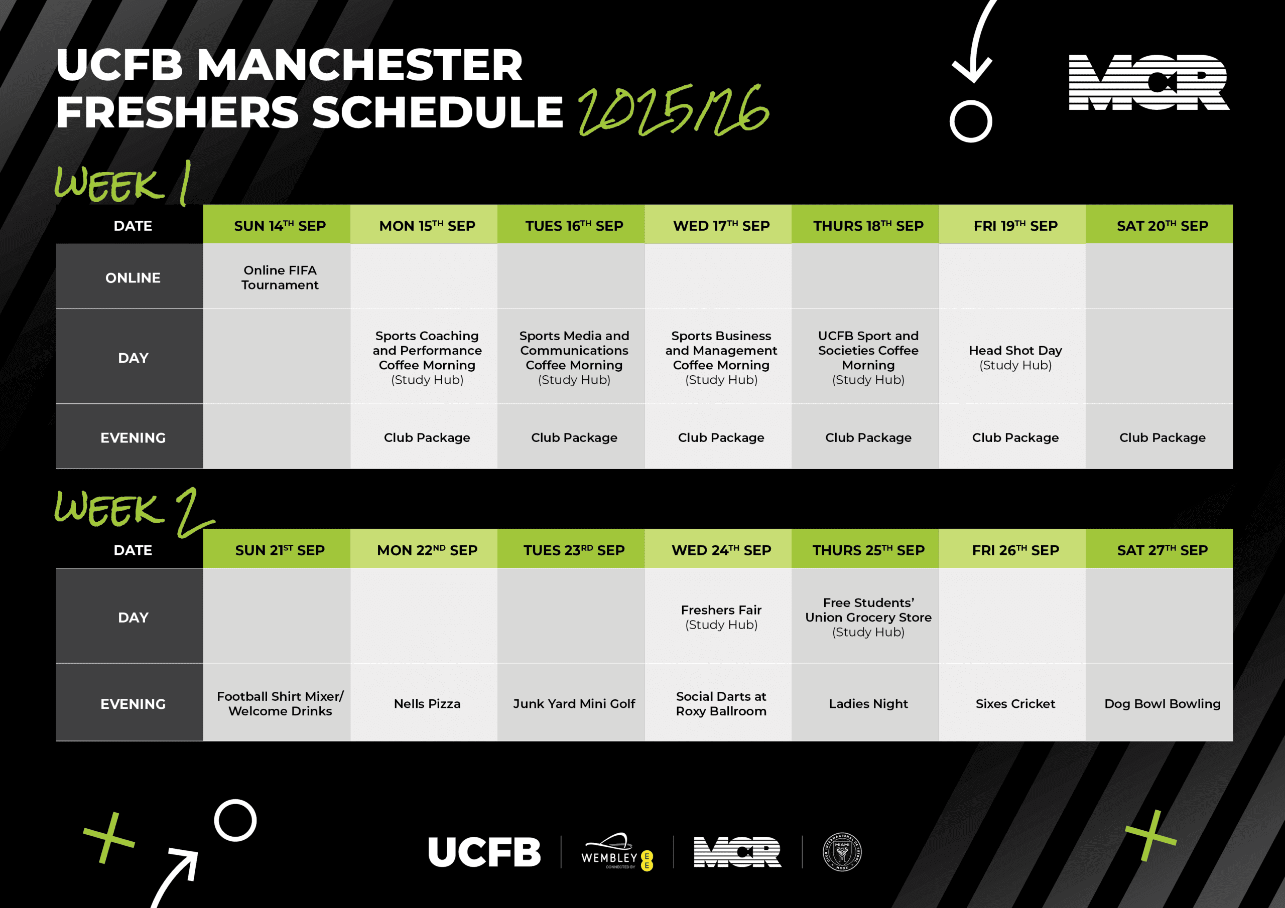 From buzzing nights out to chilled coffee mornings, Freshers’ Week at UCFB Manchester is all about finding your people and making the most of one of the UK’s most exciting cities. You’ll be based at The Study Hub, your go-to space for support, study, and student life. Expect a packed week of community-building, campus exploration and epic social events.